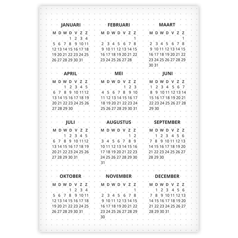 Wil jij graag minikalenders voor 2026 in jouw journal, maar heb je geen zin om ze zelf helemaal uit te schrijven? Print deze printable en plak hem in je journal. De opmaak van de minikalender is gemaakt op A5 formaat, het meest voorkomende formaat notitieboek. De achtergrond van de minikalender bestaat uit grijze stipjes op 5 mm afstand. Uiteraard is de printable minikalenders ook te groter of kleiner te printen, maar houd er dan rekening mee dat de afstand van de dotgrid anders wordt.